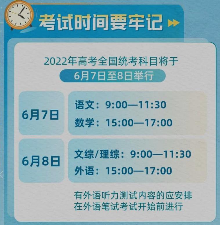 2022年年高考全國統(tǒng)考科目將于6月7日至8日舉行